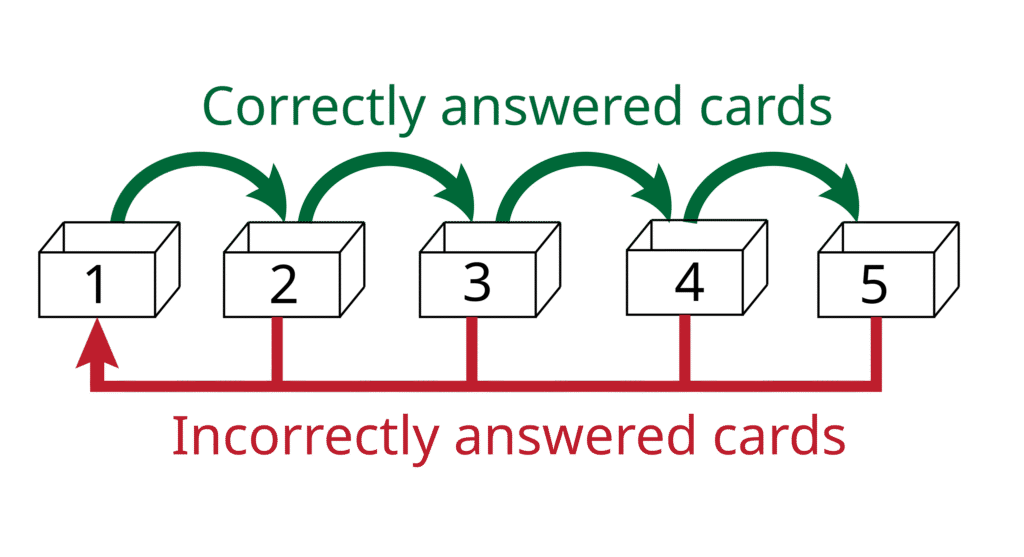 You didn’t remember the answer? Then the card stays in the first compartment.